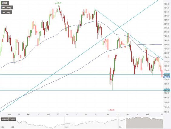 We wrześniu, gdy główne zagraniczne indeksy (S&P 500, DAX) biły rekordy, krajowy rynek akcji poruszał się głównie po linii horyzontalnej. Teraz, kiedy zachodnie giełdy słabną, inwestorzy nie mają litości i wyprzedają polskie akcje i nie tylko je. Po marnym początku tygodnia we wtorek WIG i WIG20 dalej zniżkowały. W przypadku tego drugiego konsekwencje ostatniej sesji mogą być poważne, zwłaszcza jeśli na rynkach zachodnich nastroje na dobre się pogorszą. Indeks dużych spółek w trakcie wtorkowej sesji zszedł do ważnej linii wsparcia ustawionej na 2260 pkt, która tym razem nie powstrzymała spadków. Przypomnijmy, że poziom ten zatrzymał wrześniowe zniżki WIG20, a następnie wytrzymał test jeszcze tego samego miesiąca oraz w październiku. Trzecia próba ataku podaży okazała się jednak skuteczna. WIG20 powędrował we wtorek nawet do 2247 pkt, znajdując się tym samym najniżej od sierpnia. Handel zakończył zaś na 2500 pkt, co oznaczało spadek o 1,24 proc.