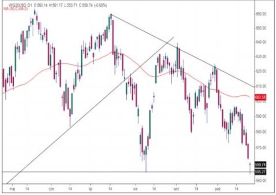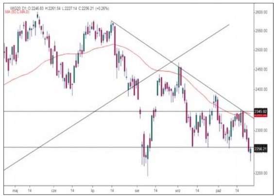 W Europie świeżo ustanowionymi rekordami może pochwalić się DAX, ale z CAC 40 jest już znacznie gorzej, choć w walce o ostatnie miejsca w tabeli ma mocniejszego konkurenta w postaci WIG20. Indeks polskich dużych spółek w środowe południe zameldował się na 2227 pkt, czyli dotarł do jednego z ważniejszych poziomów z sierpniowych dołków. Reakcja popytu w tym miejscu nie była zatem zaskoczeniem, ale pewnie mało kto chciałby być obecnie w skórze kupujących, zwłaszcza jeśli za oceanem rynek zacznie wytracać impet.