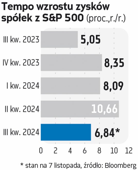 III kwartał jest piątym z rzędu, kiedy spółki z S&P 500 odnotowują pozytywną dynamikę zysków, jednak na razie tempo jest niższe niż w poprzednich kwartałach. W okresie kwiecień–czerwiec dynamika wzrostu zysków była dwucyfrowa. Wiele spółek w swoich raportach i na konferencjach wynikowych odnosiło się jednak do tego, że najgorsze jest już za nimi. Z danych Bank of America wynika, że słowo „dołek” (z ang. bottom) pojawiało się 42 proc. częściej niż w trakcie poprzedniego sezonu wyników.
