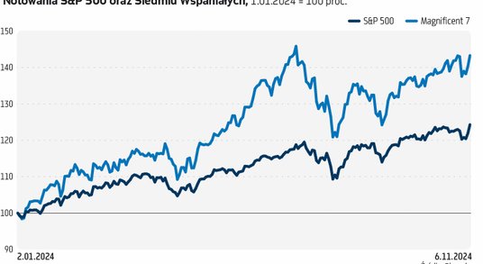 Amerykańskie indeksy wyznaczyły w tym tygodniu historyczne szczyty. Impuls wzrostowy wywołała powyborcza euforia, ale indeksy w USA pną się w górę od dawna. Paliwo do wzrostów dają giganci technologiczni, którzy po raz kolejny pokazali wysoką dynamikę wzrostu wyników. Poprawa zysków dotyczy większości sektorów.