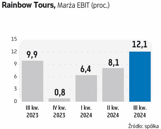 W okres wyraźnej poprawy wyników i rosnących marż weszły spółki związane z branżą turystyczną, jak Rainbow Tours czy Enter Air, które są beneficjentami rosnącego od zakończenia pandemii popytu na wycieczki zagraniczne. Motorem poprawy wyników touroperatora był większy wolumen sprzedaży wycieczek wspierany przez wzrost ich cen. Z kolei wzrost przychodów przewoźnika świadczącego usługi czarteru samolotów wynikał z rozbudowy floty i zwiększenia operacji lotniczych, stanowiących odpowiedź na wysoki popyt.