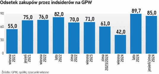 29 listopada był ostatnim dniem na publikację raportów za III kwartał przez spółki notowane na rynku regulowanym. W związku z tym w wielu firmach zakończyły się okresy zamknięte (30 dni kalendarzowych przed publikacją sprawozdania finansowego). Ma to swoje odzwierciedlenie w rosnącej liczbie insiderskich transakcji. Tych, o których informacje trafiły na rynek od początku grudnia było już niemal 40 (nie licząc raportów o obejmowaniu akcji w ramach programów menedżerskich). W 85 proc. transakcje dotyczyły zakupów, a w pozostałych 15 proc. sprzedaży. To wskazuje na utrzymujące się pozytywne nastroje na warszawskiej giełdzie. Nie powinno to dziwić, bo – w przeciwieństwie do zagranicznych parkietów – wskaźniki dla spółek notowanych w Warszawie nadal są relatywnie atrakcyjne. Co więcej, gros firm zapowiada, że 2025 r. będzie dla nich bardzo dobry, co powinno znaleźć odzwierciedlenie w rosnących wycenach.