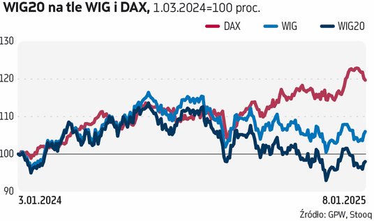 – WIG20 pozostaje znacznie przeceniony w stosunku do innych indeksów akcji (zarówno europejskich, jak i w szczególności amerykańskich). Patrząc nawet na historyczne zachowanie indeksu, obecna sytuacja wskazuje na wyraźną przecenę – mówi Tymoteusz Turski, analityk XTB. Dodaje, że obecne poziomy mogą wynikać z sytuacji za wschodnią granicą Polski. WIG20 pozostaje w sferze niedowartościowania na tle historycznym praktycznie od początku wojny w 2022 r. Stąd, choć niskie wyceny mogą zainteresować inwestorów, realnie mocniejszego odbicia naszego indeksu i solidnych wzrostów eksperci spodziewają się dopiero w momencie uspokojenia się sytuacji w Ukrainie. Wrażliwość inwestorów na doniesienia z frontu widać było w końcówce 2024 r., kiedy wszelkie informacje wskazujące na możliwe zaognienie konfliktu odzwierciedlone były mocnymi przecenami na polskiej giełdzie.