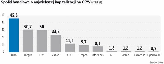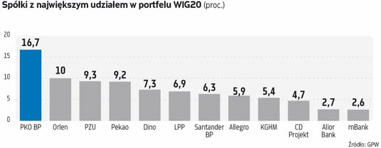Skład WIG20 jest specyficzny. Teraz niemal 56 proc. portfela indeksu stanowią spółki z udziałem SP w akcjonariacie, a pod względem branżowym prym wiodą banki (więcej w ramce poniżej). Generalnie na GPW na rynku kapitałowym dominują branże tradycyjne. Choć zasadne wydaje się pytanie, czy handel rzeczywiście jest sektorem stricte tradycyjnym? Przykład Allegro, które biznes buduje na technologii, temu przeczy. Również przedstawiciele sieci „stacjonarnych” są innowacyjni. – Zarówno Żabka, jak i CCC są dosyć elastyczne i dostosowują biznes do zmieniającego się otoczenia. W CCC e-commerce stanowi ok. 40 proc. sprzedaży. Natomiast Żabka ma ekspozycję na rynek e-grocery oraz diet pudełkowych, a w zakresie innowacji stawia sklepy autonomiczne Nano – wskazuje ekspert BM mBanku.