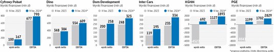 Pozytywne tendencje powinny być widoczne w spółkach nastawionych na konsumenta, zwłaszcza działających w sektorze FMCG (dóbr szybko zbywalnych). Zdaniem analityków spółki z tego grona będą beneficjentami przyspieszenia dynamiki sprzedaży porównywalnej w IV kwartale 2024 r., co zasygnalizowały już wcześniej opublikowane wstępne wyniki Żabki i portugalskiego Jeronimo Martins, właściciela sieci Biedronka. Jeśli chodzi o spółki odzieżowe, analitycy najefektowniejszej poprawy spodziewają się w przypadku wyników CCC, gdzie rok do roku oczekują potrojenia zysku netto (do 136 mln zł) i podwojenia EBITDY (do 468 mln zł). Poprawy oczekują także w LPP, ale prognozowany wzrost zysków jest tylko kilkunastoprocentowy.