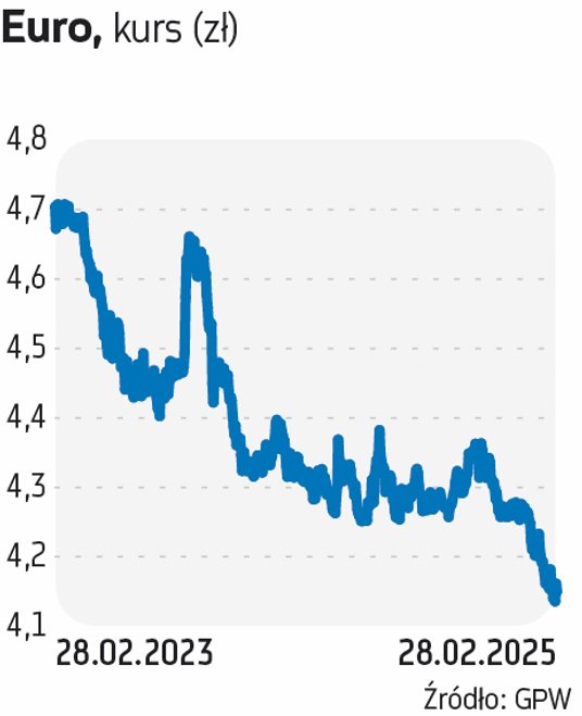 – Z punktu widzenia różnicy stóp procentowych wydaje się, że euro do złotego traciło na wartości, ponieważ oczekuje się dalszych obniżek stóp w strefie euro docelowo do 2 proc. Z kolei na tę chwilę w Polsce stopy mają się nie zmieniać, co może faworyzować złotego. Niemniej w dalszej części roku dyskusja na temat obniżek stóp może się rozpocząć, a wtedy może być już trudniej nadal taką siłę waluty utrzymać. Dodatkowo zaczyna ona już bardzo negatywnie wpływać na eksporterów – wskazuje Daniel Kostecki, analityk CMC Markets.