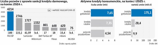 Na koniec 2024 r. toczyło się ponad 12,1 tys. postępowań sądowych dotyczących tzw. sankcji kredytu darmowego – wynika z naszej analizy rocznych sprawozdań przedstawionych przez osiem banków notowanych na giełdzie. I choć może sama liczba pozwów nie wydaje się jakoś bardzo duża, to zaskakująco wysoka jest ich dynamika.