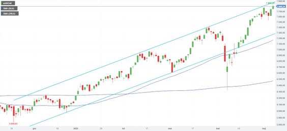 – Patrząc na wycenę rynkową dalszych obniżek stóp procentowych w Polsce, w ciągu roku może dojść jeszcze do cięć o 100 pkt – wskazuje Rafał Sadoch, analityk BM mBanku. Jak przyznaje, dużo powinno być już więc w cenach. – Za naszą zachodnią granicą DAX wrócił na szczyty i odrobił kwietniowe załamanie. Podążamy obecnie drogą wyznaczoną przez rynek niemiecki – twierdzi ekspert BM mBanku. Według niego przełom w polityce handlowej czy poluzowanie polityki fiskalnej w Europie może więc wspierać i krajowe podwórko.