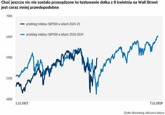Tegoroczne osłabienie amerykańskiego dolara także wpisuje się w powtórkę z 2017 roku (ok. 10-proc. spadek) co jeszcze nie musi oznaczać, że dalsze spadki rzędu 40 proc. (jak w latach 1985–1987) są przesądzone. Poza medialnymi spekulacjami dotyczącymi potencjalnego tzw. porozumienia Mar-a-Lago, mającego doprowadzić do silnego i długotrwałego obniżenia wartości dolara względem innych walut (na wzór porozumienia z hotelu Plaza z 1985 roku) wciąż brak podstaw do uznania, że będzie to realny scenariusz forsowany przez obecną administrację w Białym Domu.