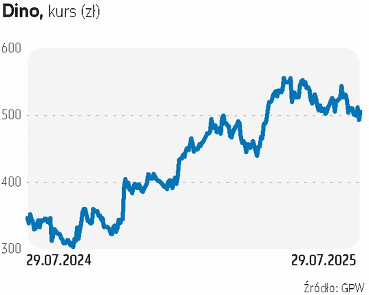 Wśród spółek, które wypadły z łask, jest Dino. Do niedawna było ono jednym z motorów wzrostów w segmencie największych firm. Kurs, po ustanowieniu w maju szczytu wszech czasów na poziomie nieco ponad 560 zł, zjechał w dół o kilkanaście proc.
