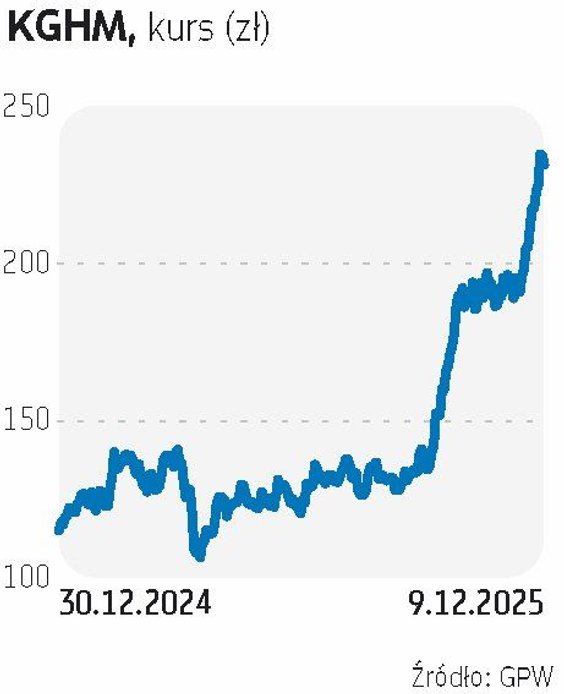 Do grona giełdowych „rekordzistów” dołączyły niedawno akcje KGHM, które w trakcie trwającej hossy przez długi czas pozostawały w tyle za pozostałymi uczestnikami WIG20. Zwyżka miedziowego koncernu wyraźnie przyspieszyła w II połowie 2025r., co sprawiło, że wycena spółki tylko w tym roku podwoiła się, a kurs ustanowił nowy rekord wszech czasów, osiągając poziom niemal 240 zł. Do zakupów akcji surowcowego potentata zachęcały rekordowo wysokie ceny miedzi i srebra, mające istotny wpływ na poziom jego zysków. Z prognoz analityków wynika, że w 2026 r. na globalnym rynku będziemy mieli do czynienia z niedoborem miedzi powodowanym m.in. gromadzeniem zapasów w USA, co powinno dalej wspierać jej wycenę. Z prognoz Citigroup wynika, że cena miedzi wyniesie średnio 13 tys. dol. w drugim kwartale przyszłego roku, ponieważ zapasy rosną w USA, co generuje deficyt w innych krajach. – Jesteśmy przekonani co do wzrostu cen miedzi do 2026 r. wspieranego przez wiele czynników, w tym coraz bardziej konstruktywne tło fundamentalne i makroekonomiczne – wskazują w najnowszym raporcie analitycy Citi. Dodatkowym wsparciem dla notowań były prace nad ustawą zakładającą obniżenie podatku miedziowego, co ma przynieść KGHM kilkaset milionów złotych oszczędności rocznie.