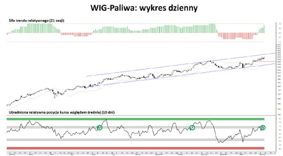Ostatni tydzień przyniósł bardzo silne przetasowania sektorowe i wyraźne różnice w zachowaniu indeksów. Na czele rynku trwa rywalizacja paliw i banków (z wyścigu odpadła motoryzacja). Banki zyskały w tygodniu 3,24 proc., poprawiając siłę trendu o 31 p.p. do +69 proc. oraz pozycję relatywną do +0,80 σ (wzrost o 0,41 σ). Paliwa wzrosły o 2,51 proc., poprawiając siłę trendu do +85 proc. (wzrost o 46 p.p.) i utrzymując pozycję relatywną w okolicach +1 σ. Układ ten potwierdza walkę o miano lidera, ale jeszcze bez jednoznacznego rozstrzygnięcia.