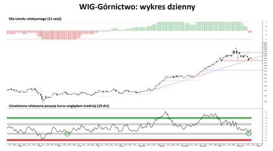 Po przeciwległej stronie mapy sektorowej warto zwrócić uwagę na informatykę, gdzie nawet symboliczny wzrost o 0,60 proc. przełożył się na wyraźne odbicie pozycji relatywnej aż o +1,14 σ. To pokazuje, jak mocno sektor był wcześniej wyprzedany. Nie zmienia to jednak faktu, że siła trendu pozostaje skrajnie niska (–100 proc.), a więc trudno mówić o trwałej poprawie. Po słabszej stronie rynku znajdują się również chemia (–3,24 proc.) oraz leki (–1,45 proc.). Oba sektory utrzymują relatywnie niskie odczyty, a brak poprawy w sile trendu sugeruje, że presja może się utrzymywać.