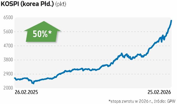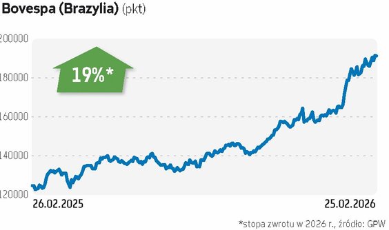Tegoroczna wzrostowa fala objęła swym zasięgiem zarówno azjatyckie rynki, gdzie sektor nowych technologii ma silną reprezentację, stanowiąc alternatywę dla amerykańskich akcji, jak również skoncentrowane na bardziej tradycyjnych sektorach giełdy krajów Ameryki Łacińskiej. Wśród rynków wschodzących w tym roku prym wiedzie giełda południowokoreańska, gdzie główny wskaźnik KOSPI poszybował w górę o blisko 50 proc. Mniej spektakularną, bo „tylko” 22-proc. zwyżką może się pochwalić tajwańska giełda. – Istotą tej fali jest różnica w profilu ryzyka. W krajach azjatyckich, jak Korea czy Tajwan, rajd jest w dużej mierze zakładem o globalny cykl „sprzętowy” związany ze sztuczną inteligencją, a indeksy są silnie skoncentrowane w największych spółkach półprzewodnikowych, co zwiększa potencjał dalszych wzrostów, ale też wrażliwość na rozczarowania w wynikach i zmianę narracji wokół wydatków na AI. Z kolei Ameryka Łacińska lepiej „łamie korelację” z czystą technologią z USA dzięki większemu udziałowi surowców i finansów oraz wyższym dywidendom, ale podnosi ekspozycję na ryzyko walutowe, ścieżkę inflacji i stóp procentowych oraz kwestie fiskalne – zauważa Krzysztof Kamiński, analityk Oanda TMS Brokers.