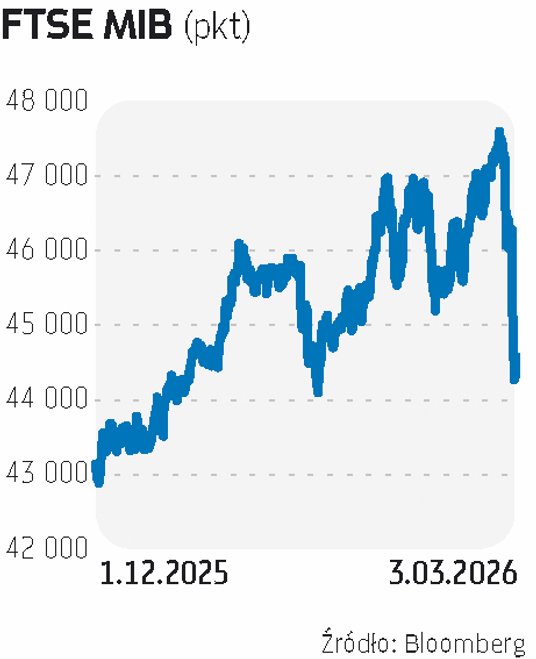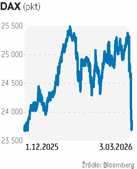 Przez globalne giełdy przetaczała się we wtorek fala ostrej wyprzedaży związanej z wojną na Bliskim Wschodzie. Zaczęła się ona w Azji. Japoński indeks Nikkei 225 stracił podczas wtorkowej sesji 3,06 proc., a południowokoreański KOSPI spadł aż o 7,24 proc. Dla głównego indeksu giełdy w Seulu wtorek był najgorszym dniem od 19 miesięcy. (W poniedziałek ta giełda była zamknięta ze względu na święto.) Tajwański Taiex spadł o 2,2 proc., a Hang Seng, główny indeks giełdy w Hongkongu, zniżkował o 1,1 proc. Pakistański indeks KSE-30 tąpnął o ponad 10 proc. i wszedł w rynek niedźwiedzia. Handel w Europie zaczął się od spadków, które w kolejnych godzinach się pogłębiały. Niemiecki indeks DAX tracił po południu 3,4 proc., francuski CAC 40 spadał o 2,9 proc., włoski FTSE MIB zniżkował o 3,9 proc., grecki Athex Composite tąpnął o ponad 4 proc., a polski WIG 20 szedł w dół o 3,5 proc.