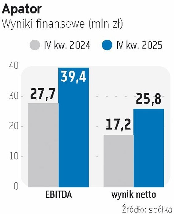 Oczekiwaniom rynku nie sprostały wyniki Apatora. Warto jednak zauważyć, że wpływ na nie miały zdarzenia jednorazowe. Spółka zawiązała rezerwę na koszty reklamacji w wysokości 20,8 mln zł w segmencie energii elektrycznej. – Wspomniana rezerwa związana z roszczeniem klienta wpłynęła na całkowitą marżę zysku brutto ze sprzedaży negatywnie (o 6,2 pkt. proc.) Po uwzględnieniu tego, marża wyniosłaby 26,8 proc., co byłoby całkiem przyzwoitym poziomem (o 2,5 pkt. proc. wyższym od naszych szacunków). Podobna sytuacja dotyczy EBITDA, EBIT i zysku netto – podane wartości są niższe od naszej prognozy i oczekiwań rynku i byłyby wyższe po skorygowaniu o wpływ roszczenia – zauważa Damian Szparaga, analityk BM Pekao. Cały 2025 r. producent urządzeń pomiarowych może jednak uznać za udany. W tym roku Apator nie będzie miał jednak łatwo. – Na ten rok zakładamy nieznaczny wzrost przychodów do 1,21 mld zł, przy jednoczesnym nieznacznym spadku rentowności, szczególnie w drugiej połowie roku, ze względu na obserwowany wzrost cen kluczowych surowców, przede wszystkim miedzi i srebra. W naszej ocenie 2026 r. powinien być rokiem przejściowym, natomiast oczekujemy dalszej poprawy rentowności w kolejnych latach – wyjaśnia analityk BM Pekao.