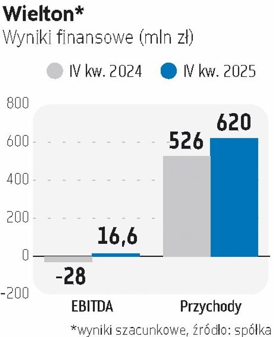 Pozytywna zmiana jest kontynuowana w wynikach Wieltonu. Wyniki kwartalne producenta naczep i przyczep wypadły lepiej niż zakładali analitycy. Według wstępnych i niepełnych szacunków w IV kwartale 2025 r. Grupa Wielton zanotowała 16,6 mln zł zysku EBITDA wobec 27,9 mln straty w analogicznym kwartale poprzedniego roku. Przychody zwiększyły się rok do roku o 18 proc. do 620 mln zł. – Wyniki za IV kwartał 2025 r. były lepsze niż można było tego oczekiwać, aczkolwiek poznaliśmy tylko wybrane dane (wolumen, przychody, EBITDA), w związku z czym nie wiemy do końca czy na wynik EBITDA nie wpłynęły jakieś jednorazowe zdarzenia w tym okresie. Zakładając, że wynik EBITDA był bez wpływu zdarzeń jednorazowych, to byłby to najlepszy wynik od IV kwartału 2023 r., a wolumen od II kwartału 2024 r. – zauważa Łukasz Rudnik, analityk Trigon DM. Jednocześnie podkreśla, że mocne wyniki kwartalne w zakresie wolumenów i przychodów w dużej mierze mogły wynikać z rozliczenia kontraktu dla klienta e-commerce (Amazon), z którym umowa została podpisana w maju 2025 r. – Mimo udanego IV kwartału 2025 r. w dalszym ciągu dość chłodno podchodzimy do perspektyw spółki na I półrocze 2026 r. z uwagi na presję inflacyjną (ceny stali, aluminium i innych komponentów), wzrost cen nośników energii, który uderza nie tylko w koszty klientów (przewoźnicy), ale także stawia znak zapytania przy odbiciu gospodarczym w Europie w perspektywie 2026 r. W kontekście tych wyzwań ostatnie podwyższenie kapitału na kwotę 30 mln zł , o którym informowała spółka może okazać się niewystarczające. Z punktu widzenia sprzedaży istotne będzie także to, czy w br. spółka również otrzyma zamówienia od klienta e-commerce podobnej skali co w ub.r. – wskazuje.