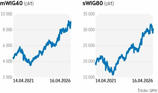 Indeksy na warszawskiej giełdzie w ostatnich kwartałach rosły szybciej niż na zagranicznych rynkach, co rodzi obawy o skalę ewentualnej korekty na GPW. Od początku hossy, czyli od jesieni 2022 r., WIG zyskał aż 180 proc. Nowe rekordy systematycznie biją też indeksy spółek średnich (mWIG40) oraz małych (sWIG80), mocno przebijając poziomy zanotowane u szczytu poprzedniej hossy, czyli we wspomnianym 2007 r. Ale to wcale nie znaczy, że akcje spółek z GPW należy już omijać szerokim łukiem. Ich wyceny (w ujęciu historycznym i wobec zagranicznych konkurentów) nadal nie wydają się wygórowane, a perspektywy dla polskiej gospodarki są dobre. Chyba że przedłużający się konflikt na Bliskim Wschodzie przełoży się negatywnie na otoczenie makroekonomiczne i uderzy w zyski firm.