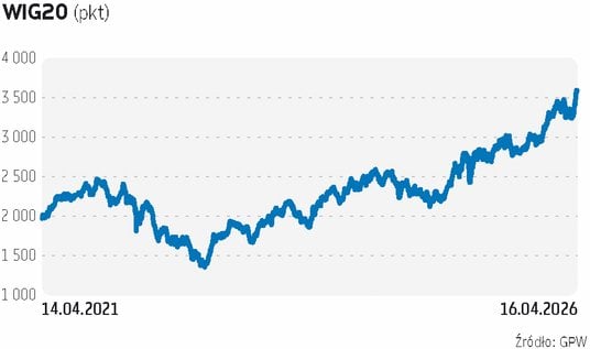 Choć WIG20 ma za sobą mocną zwyżkę, to nadal nie udało mu się pobić historycznego rekordu z 2007 r., kiedy sięgnął 4 tys. pkt. Ale droga do ustanowienia nowego szczytu nie jest już daleka, brakuje 9–10 proc.