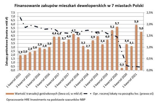 - Jednym z powodów tak wysokich wyników jest niskie oprocentowanie bankowych depozytów. To powoduje, że więcej osób jest skłonnych do inwestowania w nieruchomości. Na ich wynajmie można zarobić nawet kilkadziesiąt razy więcej niż na lokacie. Do tego historia pokazuje, że mieszkania potrafią uchronić kapitał przed destrukcyjnym działaniem inflacji. To między innymi dlatego nieruchomości postrzegane są jako bezpieczna przystań dla kapitału – mówi Bartosz Turek, główny analityk HRE Investments.