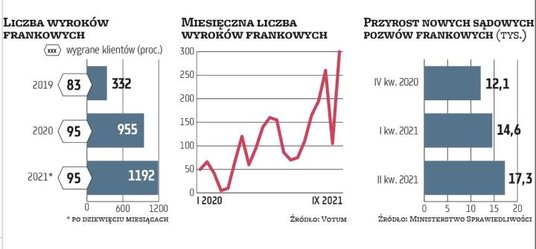 We wrześniu w polskich sądach zapadło 300 wyroków w sprawach dotyczących hipotek frankowych – wynika z danych Votum Robin Lawyers reprezentującej kredytobiorców. To nowy rekord (dotychczasowy to 260 z lipca) i znacznie więcej niż 100 wyroków z sierpnia (niska liczba spowodowana urlopami).