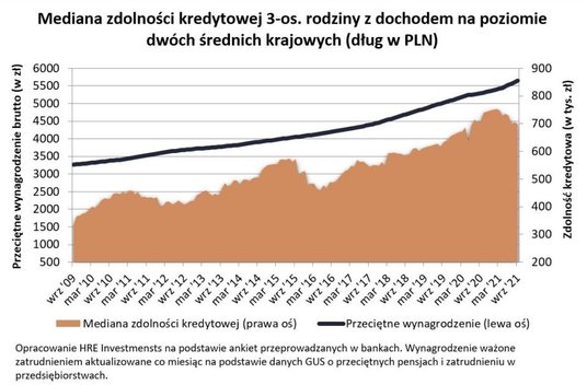 - Warto wiedzieć, że same banki utrzymały swoje oferty kredytowe na niemal identycznym poziomie w porównaniu do sierpniowych. To dlatego w ramach przeprowadzanej przez nas cyklicznie ankiety otrzymaliśmy we wrześniu wyniki zbliżone do sierpniowych. Przypomnijmy, że co miesiąc monitorujemy ofertę kredytową, która przedstawiona zostałaby trzyosobowej rodzinie, w której oboje rodzice pracują i każde z nich przynosi do domu po średniej krajowej – mówi Turek. Taka familia mogłaby pożyczyć na zakup mieszkania ponad 706 tys. zł – tak wynika z ankiety przeprowadzonej przez HRE Investments. Niezbędne jest, aby uściślić, że nasza przykładowa rodzina chce zadłużyć się na lat 30, ma do dyspozycji co miesiąc ponad 8 tysięcy zł netto, do tego nie ma innych zobowiązań, a mimo to zdążyła już wyrobić sobie dobrą historię kredytową. Najnowszy wynik jest o kilka tysięcy niższy zarówno względem tego sprzed roku, jak i tego sprzed miesiąca.
