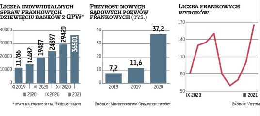 W maju zapadło co najmniej 165 wyroków polskich sądów w sprawach dotyczących hipotek frankowych – wynika z danych Votum Robin Lawyers. To rekord, dotychczas najwięcej wyroków zapadło w grudniu 2020 r. (około 150). W kwietniu tego roku było 100 orzeczeń, więcej niż w styczniu, lutym i marcu (odpowiednio 80, 60, 70).