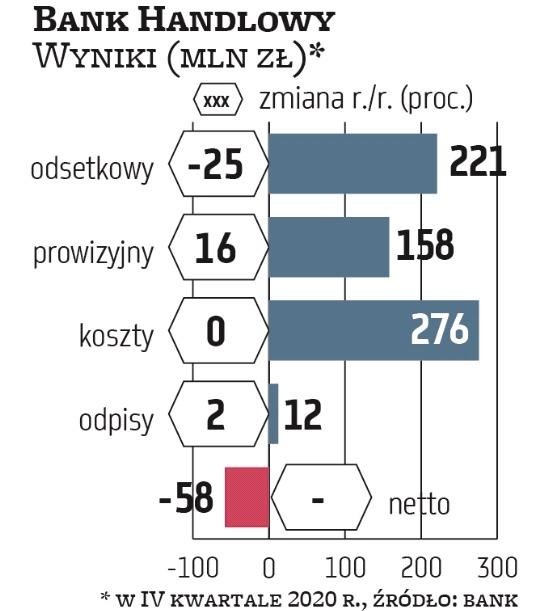 W 2020 r. bankowość detaliczna zanotowała ponad 350 mln zł straty brutto w porównaniu z prawie 160 mln zł zysku w 2019 r. Oprócz niemal 30-proc. spadku wyniku z odsetek oraz prawie 20-proc. z opłat i prowizji przyczynił się do tego 40-proc. wzrost odpisów kredytowych. Słabe rezultaty biznesu detalicznego zmusiły bank do odpisu wartości firmy (goodwill) w tej części w wysokości prawie 215 mln zł. To przesądziło nie tylko o stracie brutto bankowości detalicznej w 2020 r., ale także o stracie netto całego banku w IV kwartale 2020 r. Wyniosła ona 58 mln zł w porównaniu ze 180 mln zł zysku netto w IV kwartale 2019 r. i 115 mln zł w III kwartale 2020 r. Zarobek netto wyniósł w całym roku 172 mln zł, o 64 proc. mniej niż w 2019 r.