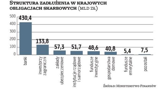Okazuje się, że grudniową przecenę papierów skarbowych wykorzystały głównie fundusze inwestycyjne. W tych instytucjach portfel rządowych papierów wzrósł w ostatnim miesiącu zeszłego roku z niecałych 46 mld zł do 48,6 mld zł. Tego typu aktywów przybyło także w funduszach emerytalnych, tym razem za 0,5 mld zł. Dodatkowo około 1,4 mld zł wydali na polskie obligacje inwestorzy zagraniczni. Po drugiej stronie rynku znalazły się w grudniu banki, które pozbyły się obligacji łącznie za 5,2 mld zł.