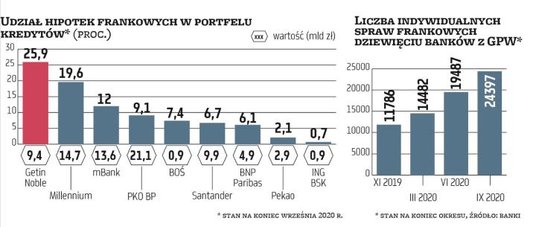 Z naszych informacji wynika, że banki są zainteresowane ugodami. – Dla banków to kosztowne rozwiązanie, a dla klientów potencjalnie bardzo korzystne. Jednak jeśli pozwoli ostatecznie zamknąć temat franków, jesteśmy gotowi zrealizować postulat KNF, bo kredyty te ciążą sektorowi – mówi członek zarządu jednego z polskich banków mającego sporo hipotek frankowych.