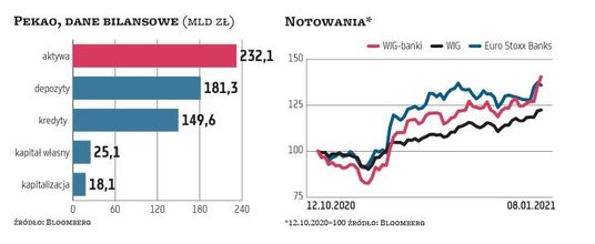 Wśród najmocniej zyskujących były banki frankowe, takie jak Millennium czy mBank, które najwięcej straciły w 2020 r. W piątek ich akcje drożały odpowiednio o ponad 9 proc. i 6 proc. Jednym z najmocniej drożejących było też Pekao (+4 proc.), które z początkiem roku przejęło Idea Bank po decyzji Bankowego Funduszu Gwarancyjnego dotyczącej przymusowej restrukturyzacji tej należącej wtedy do Leszka Czarneckiego spółki. Pekao przejął 14,4 mld zł jej aktywów, co stanowi 6 proc. jego własnych aktywów (otrzymał na to około 200 mln zł dotacji). Portfel kredytów i należności leasingowych, łącznie wart 12 mld zł, został objęty przez BFG ośmioletnią gwarancją.