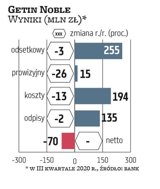 Bank miał w III kwartale 70 mln zł straty netto, o jedną trzecią mniej, niż prognozowali analitycy (dzięki niższym rezerwom). Strata jest również mniejsza niż rok temu (wyniosła 101 mln zł) i w II kwartale (247 mln zł). Po dziewięciu miesiącach bank ma 426 mln zł straty wobec 347 mln zł pod kreską rok temu, do czego przyczyniły się niższe stopy procentowe (wywierające presję na wynik z odsetek) oraz rezerwy na pandemię i hipoteki frankowe.