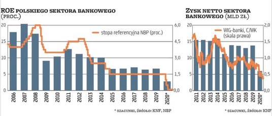 Pozostałe banki w sektorze po ośmiu miesiącach zarobiły łącznie 6,6 mld zł. Biorąc pod uwagę ostatnie wyniki giełdowych instytucji, można wnioskować, że za straty odpowiada głównie grupa mniejszych podmiotów, choć duże banki także cierpią z powodu pandemii (widać to w spadającym ROE, czyli zwrocie z kapitałów). Już przed pandemią widoczny był podział między tymi grupami, prezes PKO BP Zbigniew Jagiełło mówił wręcz, że polski system bankowy pękł na dwie części. W jednej jest mniej więcej ośmiu dużych i średnich kredytodawców, w drugiej kilkanaście małych uniwersalnych banków, które z racji swojej skali mają zbyt niskie ROE. Teraz podział jeszcze się pogłębia.