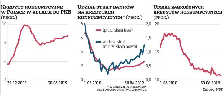 Bank centralny zaznacza, że kredyty konsumpcyjne tradycyjnie charakteryzują się wyższym ryzykiem niż pozostała część portfela i stanowią istotną, na tle innych krajów Unii Europejskiej, część portfela kredytowego banków w Polsce. Stanowią 16 proc. kredytów przyznanych sektorowi niefinansowemu, ok. 8 proc. polskiego PKB, czyli więcej niż średnia dla krajów strefy euro wynosząca 5,4 proc. PKB. Oznacza to, że jakość kredytów konsumpcyjnych ma relatywnie większy wpływ na sytuację polskich banków, niż ma to miejsce w innych krajach UE.