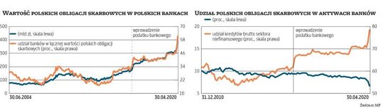 PFR w ramach planowanego na 100 mld zł programu wyemitował do tej pory obligacje warte 62 mld zł (BGK za około 43 mld zł), które obejmują głównie polskie banki. Wprawdzie nie są one wyłączone z podatku bankowego tak jak obligacje skarbowe (które obniżają podstawę opodatkowania i dlatego banki mające duże nadwyżki płynności tak chętnie je kupowały), ale są nieco wyżej oprocentowane (o podatek bankowy z lekką nawiązką), więc sektor chętnie je kupuje. W części te obligacje (ale też istniejące już wcześniej papiery) odkupuje od banków NBP, który do tej pory skupił z rynku wtórnego obligacje o wartości 93,8 mld zł (z czego nieco ponad połowa to skarbowe), resztę stanowią papiery PFR i BGK (łącznie skupiono je za 43 mld zł). Polski sektor zasilany jest więc dużą dodatkową płynnością – wskaźnik kredytów do depozytów spadł na koniec maja poniżej 85 proc., poziomu nienotowanego od lat. Płynność jeszcze będzie rosła, bo program PFR niedawno przekroczył półmetek (do tej pory skup obligacji przez NBP to 4,2 proc. PKB, a zdaniem ekonomistów ING Banku Śląskiego może sięgnąć 8,5–9 proc.). Nie pozostaje to bez wpływu na banki.
