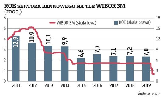 Dla banków byłby to duży cios. – Już ostatnia obniżka o 100 pkt baz. przy ówczesnym poziomie stóp oznaczała obniżkę marży odsetkowej netto banków z GPW średnio o 27–34 pkt baz. w skali 12 miesięcy – mówi Marta Czajkowska-Bałdyga, analityk Haitong Banku. Negatywny wpływ na wynik netto sektora w tym roku szacowany jest na 2 mld zł.