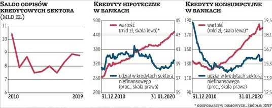Główny skutek zawieszenia spłat to pogorszenie płynności banków, ale sektor wchodzi w kryzys z dużą nadwyżką pieniądza, a w razie potrzeby NBP wprowadził szereg działań mających zapewnić im płynność. Większa obawa dotyczy wzrostu odpisów. Wprawdzie UKNF przyjął Pakiet Impulsów Nadzorczych, z którego wynika, że zawieszenie spłat w ramach wakacji nie powinno mieć automatycznego wpływu na konieczność zwiększenia odpisów na takie kredyty, ale banki obawiają się, że będzie to jednak konieczne, bo mogą to na nich wymóc audytorzy badający sprawozdania finansowe. Szczególnie dotyczyć to może wakacji dłuższych niż trzy miesiące i banków będących częścią międzynarodowych grup. – Potrzebujemy podstawy prawnej. Obecnie stanowisko Europejskiego Urzędu Nadzoru Bankowego jest takie, że lokalne regulacje, o ile są, mogą mieć zastosowanie w zakresie ominięcia wymogu zwiększenia odpisów. Dlatego też większość krajów uregulowała wakacje i sposób postępowania księgowego w formie ustawy. Stanowisko UKNF, że mamy być elastyczni, jest niewystarczające – mówi jeden z bankowców.