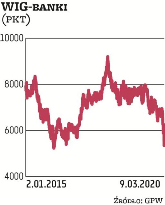 – Nikt nie wie, jak na gospodarkę wpłynie panika związana z koronawirusem. Kłopoty zgłaszają już firmy z wielu branż, np. turystyczna. Co się stanie, gdy np. spółki odzieżowe nie otrzymają na czas kolejnych kolekcji? Konieczność pozostania klientów w domach może wpłynąć na frekwencję w centrach handlowych, spadek optymizmu konsumentów przyczyni się także do ograniczenia zakupów. Kryzys może się rozlać na kolejne branże i tym samym wzrośnie ryzyko niewypłacalności części podmiotów, co uderzy w banki w postaci wyższych rezerw. Już samo wykazanie strat przez firmę może wpłynąć na taką konieczność – mówi Marcin Materna, dyrektor działu analiz Millennium DM. Szczególnie uderzy to w słabsze banki i może to być kolejny czynnik pogłębiający kryzys. – Inwestorzy wolą dmuchać na zimne i nie posiadać akcji banków, jednej z bardziej uzależnionych od koniunktury gospodarczej branż – dodaje.
