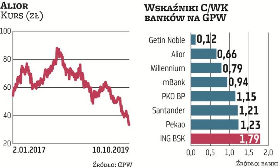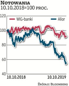 Kurs akcji Alior Banku spadł przez rok o 46 proc., do 33,7 zł, czyli najniższego poziomu w historii. Mimo że nie ma hipotek walutowych, Alior pod względem rocznej stopy zwrotu wypada najgorzej spośród wszystkich kredytodawców notowanych na GPW.