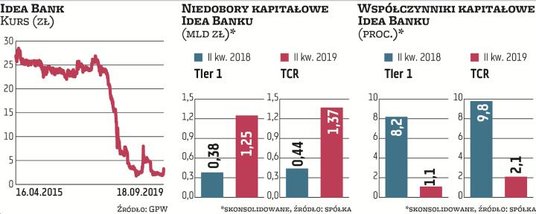 Wygląda na to, że po ostatnich komunikatach z Idea Banku dotyczących poszukiwania inwestora, którym towarzyszyła publikacja nieco lepszych wyników za II kwartał, wzrosła wiara rynku w jego pozyskanie. Idea potrzebuje go, aby, obejmując nowe akcje, dokapitalizował ją. Na koniec czerwca luka kapitałowa sięgała 1,25 mld zł i 1,37 mld zł (biorąc pod uwagę odpowiednio współczynnik kapitału podstawowego Tier 1 i łącznego TCR, oba na poziomie grupy). W poniedziałek po sesji Idea podała, że dopuści inwestora zainteresowanego jej dokapitalizowaniem do rozszerzonego badania due diligence. Chodzi o fundusz private equity, który pojawił się na początku lipca i rozpoczął ograniczone due diligence.
