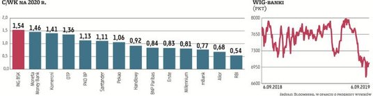 WIG-banki ze względu na ryzyko frankowe od końca czerwca stracił 12 proc., od początku roku jest przez to prawie 6 proc. pod kreską. Przecena na globalnych rynkach w tym roku (od kwietnia) uderzyła bardziej w spółki finansowe (MSCI EM Financials stracił 7,2 proc.) niż w szeroki indeks spółek Europy Środkowej (spadek o 1,9 proc.), a sama wycena indeksu MSCI EME Financials wygląda atrakcyjnie, biorąc pod uwagę wybiegający w przód o 12 miesięcy wskaźnik C/Z: notowany jest z 18-proc. dyskontem do trzyletniej średniej i aż 27-proc. do pięcioletniej. Analitycy DM mBanku, zakładając kolejne interwencje banków centralnych, uważają, że w obliczu oczekiwanych podwyżek średnich prognoz zysków wycena sektora bankowego regionu wygląda wyjątkowo atrakcyjnie.