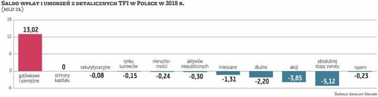 Lata złotych czasów i łatwych zysków dla towarzystw funduszy inwestycyjnych kończą się. Nie chodzi tylko o ogromne umorzenia – w 2018 r. odpływy netto sięgnęły łącznie 12,5 mld zł z detalicznych funduszy mieszanych, dłużnych, akcji i absolutnej stopy zwrotu. Powodem są także zmiany regulacyjne, czyli wprowadzenie unijnej dyrektywy MIFID II, które powodują, że zarządzanie aktywami i sprzedaż produktów inwestycyjnych nie tylko będą mniej atrakcyjne dla niektórych samych TFI, ale też wymuszają na bankach uporządkowanie tego biznesu.
