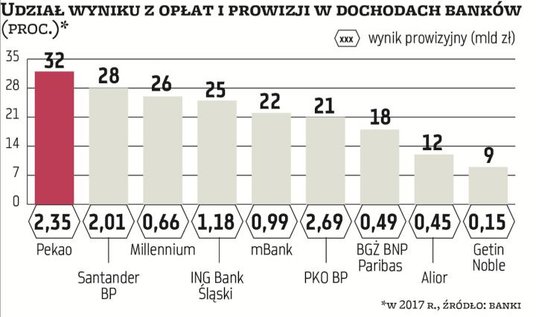 – Udział wyniku z opłat i prowizji w dochodach banku zależy od jego modelu biznesowego, profilu i tego, w jaki sposób konstruuje ofertę. Zależy też od tego, czy jest ona skierowana do klientów indywidualnych, czy do przedsiębiorstw, w tym pierwszym przypadku opłaty i prowizje są zwykle wyższe, w drugim – niższe. Poza tym banki mają także pewne możliwości kształtowania relacji dochodów odsetkowych i prowizyjnych, choć teraz, w obliczu niskich stóp procentowych, ta elastyczność jest niewielka – kiedyś, gdy stopy i wynik odsetkowy były wyższe, banki mogły sobie częściej w ofertach promocyjnych pozwolić na obniżanie opłat i prowizji – wyjaśnia Michał Sobolewski, analityk DM BOŚ. Dodaje, że wpływ na udział wyniku z prowizji w dochodach ma także to, czy bank prowadzi działalność na rynkach kapitałowych (i jak jest duża). Istotna jest także skala banku – jeśli ma zbudowaną bazę klientów, to zwykle może korzystać z nakładanych opłat, nie musi promocjami, obniżającymi ten wynik, walczyć o nowych klientów.