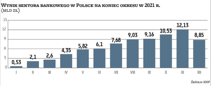 Przypomnijmy, że do tej pory doszło już do pięciu podwyżek stóp procentowych z rzędu. Stopa referencyjna jeszcze we wrześniu wynosiła 0,1 proc., a po lutowym posiedzeniu to już 2,75 proc. To dobra informacja dla akcjonariuszy banków, ponieważ wzrost stóp wspiera wynik odsetkowy pożyczkodawców. Wpływ na zyski banków był już widoczny pod koniec ubiegłego roku. Warto zaznaczyć, że wynik netto sektora bankowego w Polsce wyniósł w ubiegłym roku 8,85 mld zł.