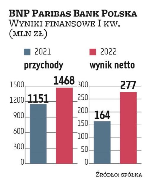 Dla banku pierwsze trzy miesiące roku okazały się udane. Wzrósł zarówno wynik odsetkowy, jak i prowizyjny, w górę poszedł też zysk netto. – Początek roku przyniósł dalszy rozwój biznesu i poprawę wyników. Pierwszy kwartał 2022 r. był piątym z rzędu kwartałem wzrostu wolumenu kredytów. Szczególnie widoczny był w tym czasie silny wzrost kredytów klientów instytucjonalnych. Dzięki rosnącemu wynikowi odsetkowemu oraz utrzymaniu wyniku z tytułu opłat i prowizji osiągnęliśmy dwucyfrowy wzrost dochodów. Wyniki za I kw. oceniam pozytywnie, jednak w kolejnych miesiącach roku sytuacja geopolityczna, makroekonomiczna, jak również wyzwania stojące przed branżą będą wymagały wzmożonego wysiłku i niestandardowych działań – stwierdził Przemysław Gdański, prezes BNP Paribas Bank Polska.