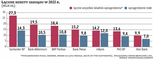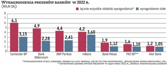 Drugie miejsce wśród analizowanych podmiotów zajął Joao Bras Jorge, prezes Banku Millennium z łącznymi zarobkami na poziomie 4,9 mln zł (o 16 proc. więcej rok do roku). Trzecia pozycja przypadła Przemysławowi Gdańskiemu, prezesowi BNP Paribas BP, który dostał w minionym roku 4,4 mln zł (w porównaniu z 3,6 mln zł w 2021 r.).