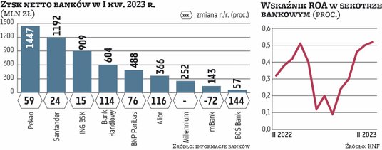 I tak o rekordowych zarobkach poinformowały Bank Pekao – to ponad 1,4 mld zł w I kwartale 2022 r., Santander Bank Polska – niemal 1,2 mld zł, ING Bank Śląski – ok. 910 mln zł, Bank Handlowy – ponad 600 mln zł, BNP Paribas – niemal 490 mln zł czy Alior Bank – prawie 370 mln zł. Blisko swojego rekordu był też BOŚ Bank – 57 mln zł czy Bank Millennium – 252 mln zł. Tylko mBank, który zawiązał duże rezerwy na kredyty frankowe, nie miał się czym pochwalić – 143 mln zł zysku w I kw. 2023 r. wobec 834 mln zł w IV kw. 2022 r.