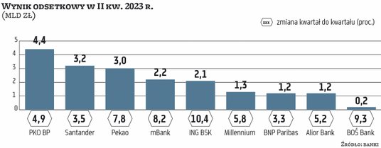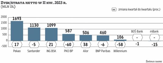 W zasadzie wyniki analizowanych spółek są bardzo dobre, łączny zysk za II kwartał sięgnął tutaj 5,56 mld zł, to aż dwa razy więcej niż rok wcześniej (2,74 mld zł). Ale w porównaniu z I kwartałem tego roku łączny zarobek netto okazał się wyraźnie niższy – o ok. 0,74 mld zł, a mniej więcej połowa banków nie poprawiła swojego rekordu uzyskanego we wcześniejszym kwartale.