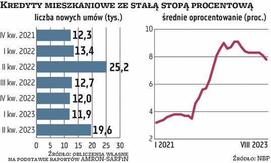 W zupełnie innej sytuacji są ci, którzy zdecydowali się na kredyt mieszkaniowy z okresowo (zwykle na pięć lat) stałą stopą procentową. W tym przypadku, niezależnie od ruchów WIBOR, miesięczna rata nie drgnie ani o złotówkę. Dla tych osób, które zaciągnęły kredyt na tzw. górce, obniżki stóp procentowych to raczej źródło rosnącej frustracji i poczucia, że „przepłacają” za swój kredyt. Tym bardziej że zgodnie z rekomendacją Komisji Nadzoru Finansowego takich kredytów nie można zamienić na te ze zmiennym oprocentowaniem w okresie, gdy obowiązuje stała stopa.