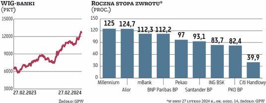Równie ważne są czynniki krajowe. Trwa sezon publikacji wyników za 2023 r. i okazują się one wyjątkowo dobre, lepsze od oczekiwań. – Dosyć łagodne okazało się też podejście regulatora, jeśli chodzi o dywidendy za miniony rok, co oznacza, że inwestorzy mogą liczyć na sowite wynagrodzenie – zauważa Łukasz Jańczak, analityk Erste Securities.
